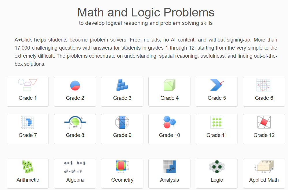 More than 17,000 challenging questions with answers for students in grades 1 through 12